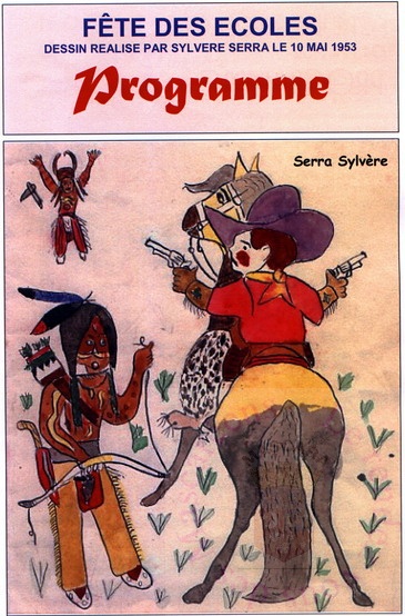 Dessin réalisé par Yvonne Hébert pour illustrer le programme de la fête des écoles du 4 mai 1952
