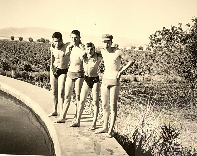De D. à G. André Rubira (décédé) Prève, Sauger (à confirmer ) dans le champs de chez Mercier,en face Bd M. Joffre