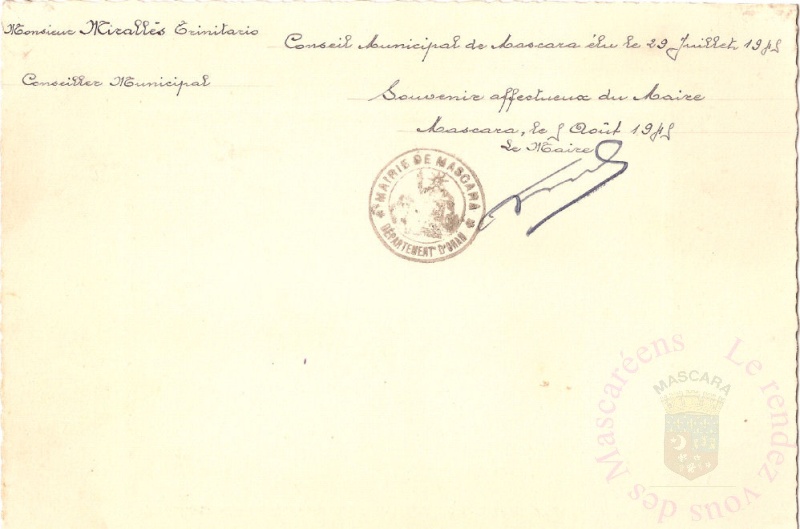 Conseil municipal de Mascara élu le 29 juillet 1945