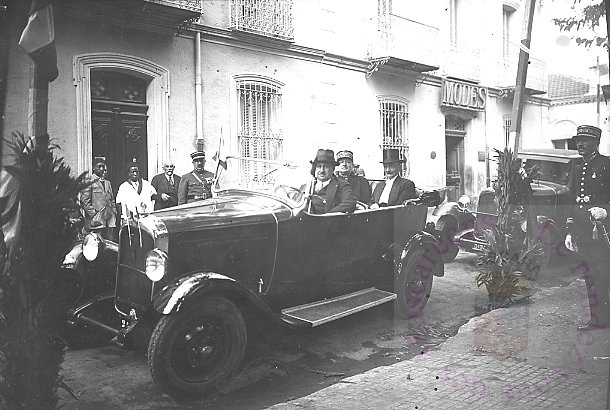 A droite du groupe MR GARRIGOS, au centre en tenue claire, MR PLANAS? à gauche du groupe, MR BARBERA.